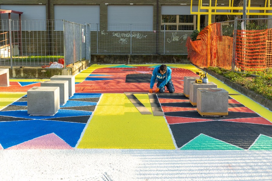 L’intervento riguarda la pedonalizzazione e riqualificazione del parcheggio antistante la scuola primaria “De Nicola”, situato tra via Enrico De Nicola e piazza Enzo Paci, allo scopo di trasformarlo in uno spazio sociale e di aggregazione per la comunità locale.